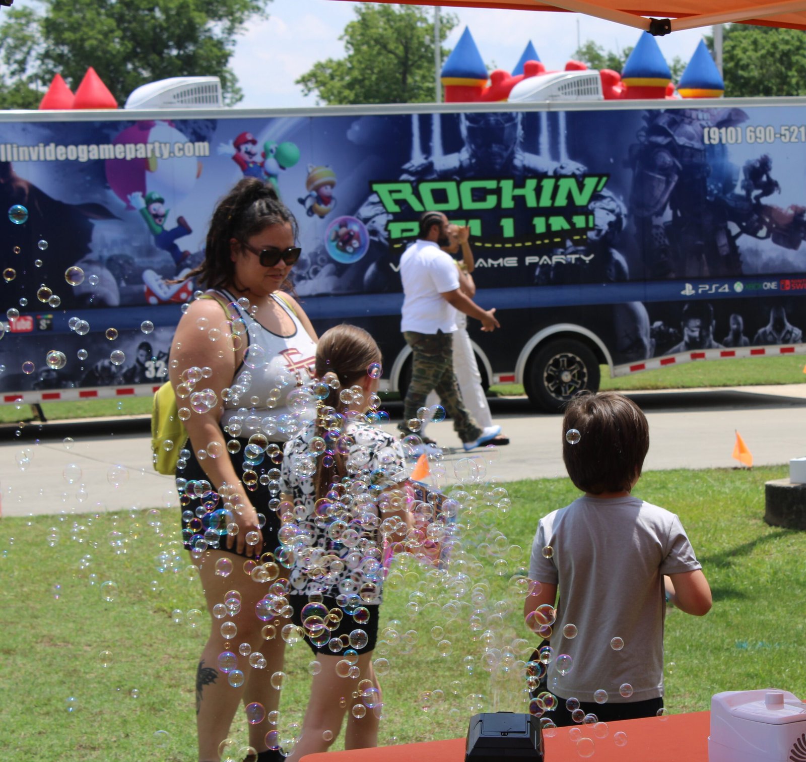 At Festival Park, a vibrant block party welcomed hundreds of residents with music, games, and heartfelt energy. Despite a forecast of rain earlier in the week, the skies cleared for one of the sunniest afternoons of the year. Children enjoyed bounce houses, bubble zones, lawn games, video games, temporary tattoos, and candy. Families, vendors, and first responders filled the park with laughter, hugs, and shared memories.